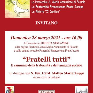 Il giorno 28 /3/ 2021 la Frat. Franc. Frate Jacopa ha incontrato l’Arcivescovo di Bologna M. Zuppi dialogando insieme sull’ enciclica “Fratelli tutti.