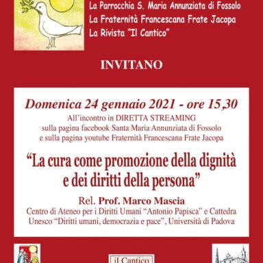 Mons. M.Toso presenta il Messaggio della Giornata Mondiale della pace 2021 al 3° incontro del Ciclo “il tempo della cura”promosso dalla Fraternità Frate Jacopa e dalla Parrocchia S. Maria Annunziata di Fossolo