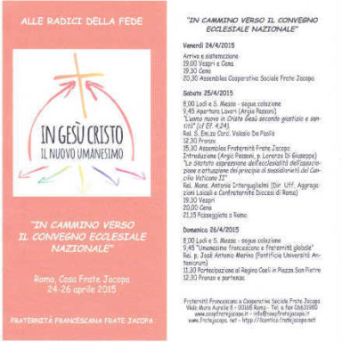 L’incontro si terrà a Roma presso Casa Frate Jacopa dal 24 al 26 aprile 2015